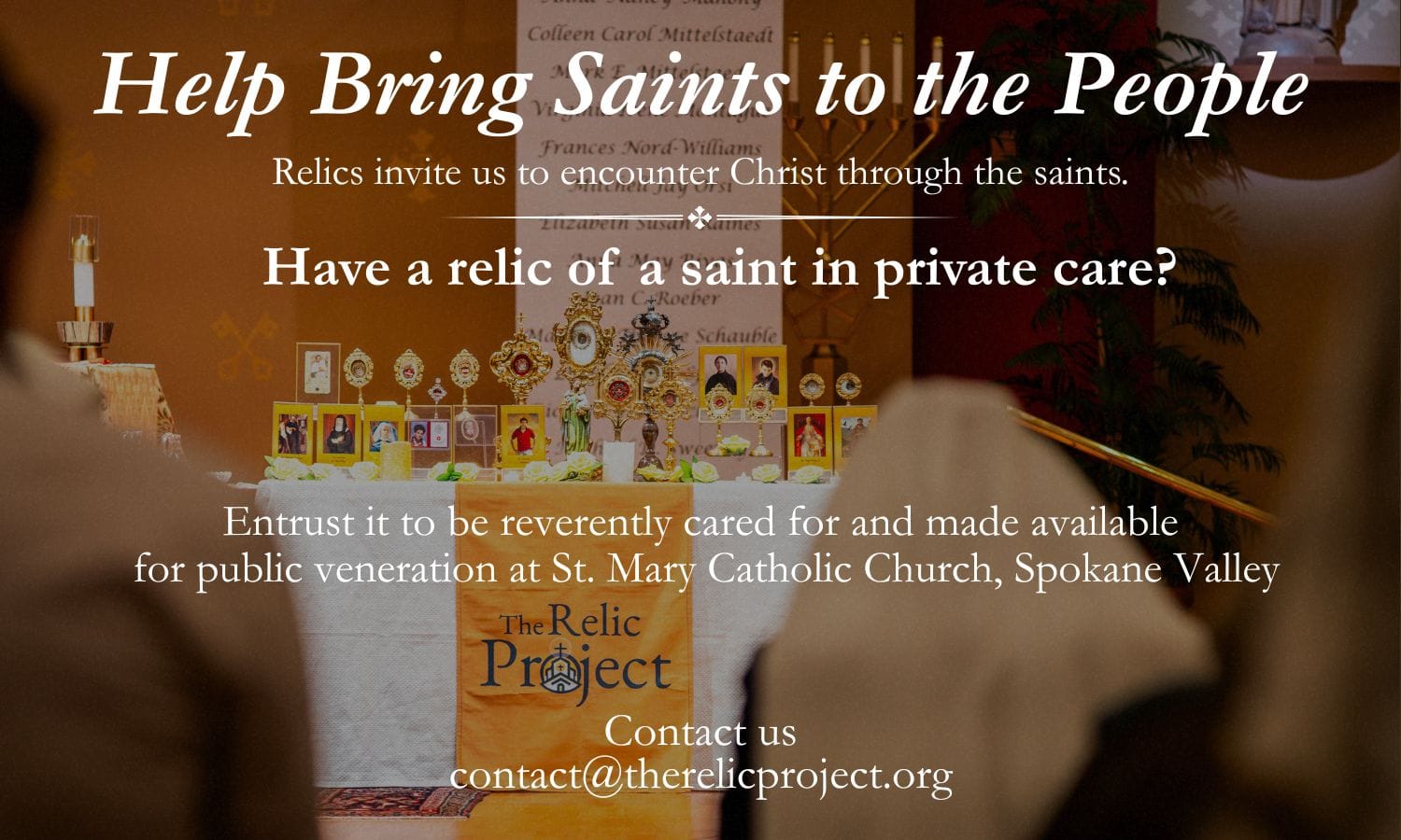 If you have a relic of a saint in your possession and have ever wondered how it might serve the wider Church, we invite you to prayerfully consider entrusting it for reverent care and public veneration at St. Mary Catholic Church in Spokane Valley.